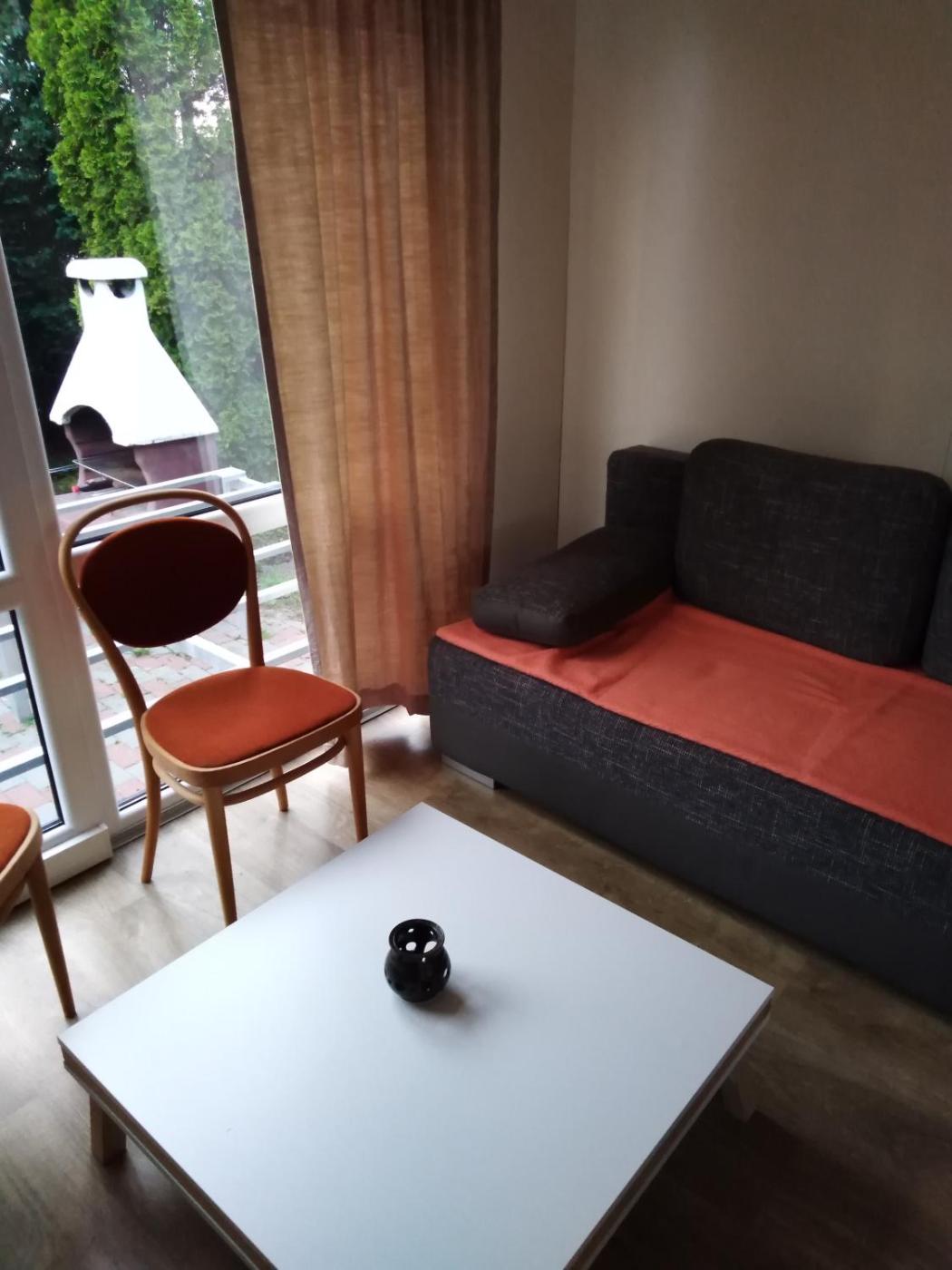 Dom z 2 sypialniami. Featuring a private entrance, this holiday home also consists of 1 living room, 2 separate bedrooms and 1 bathroom with a shower. Guests will find a stovetop, a refrigerator, a dishwasher and kitchenware in the kitchenette. The holiday home also offers a barbecue. This holiday home features an electric kettle, a sofa, a flat-screen TV and a terrace. The unit offers 4 beds. Dom wakacyjny - 4 osobowy. Powierzchnia pokoju ok.: 36 mkw.