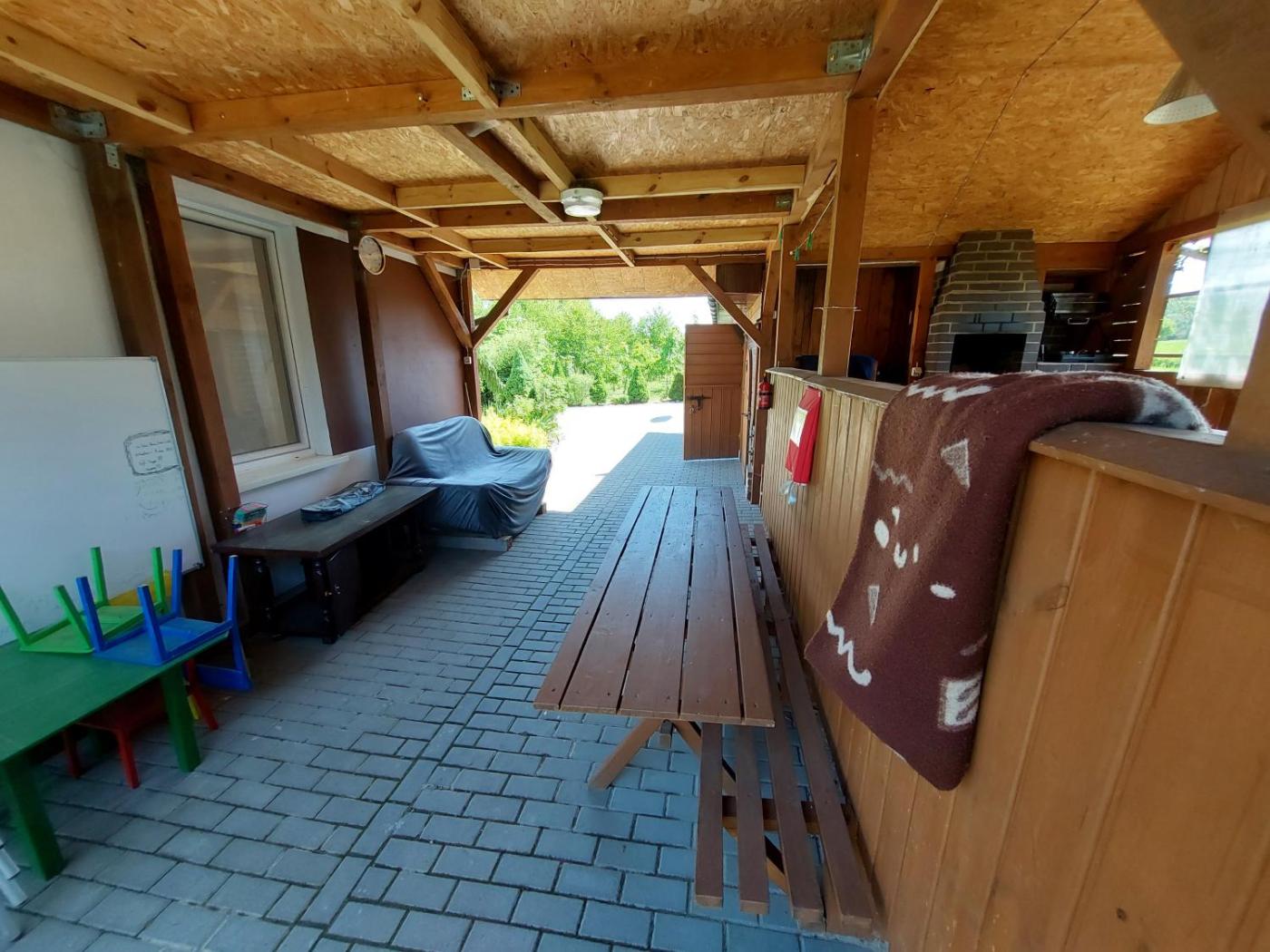 Dom z 2 sypialniami. The fireplace is the standout feature of this holiday home. This holiday home comes with 2 bedrooms, a kitchen and 1 bathroom with a shower and a hairdryer. Guests can make meals in the kitchen that features a stovetop, a refrigerator, kitchenware and an oven. The holiday home features a coffee machine, a dining area, a barbecue, a flat-screen TV with satellite channels, as well as garden views. The unit has 4 beds. Dom wakacyjny - 7 osobowy. Powierzchnia pokoju ok.: 55 mkw.
