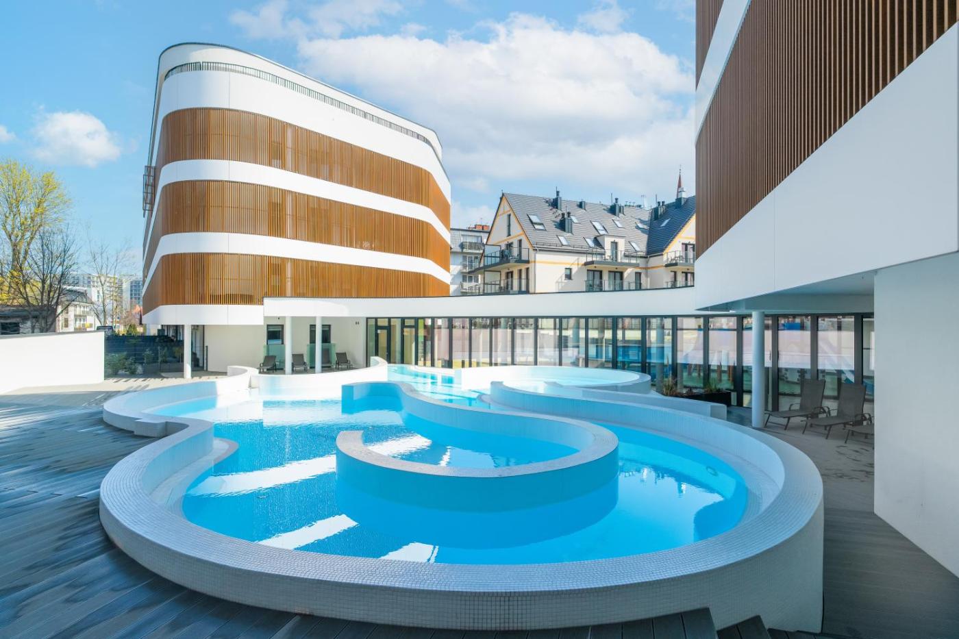 Apartament z 1 sypialnią. This apartment features a private pool and a sauna. This apartment features 1 living room, 1 separate bedroom and 1 bathroom with a shower and a hairdryer. The well-equipped kitchenette features a stovetop, a refrigerator, a dishwasher and kitchenware. This apartment has a tea and coffee maker, a seating area, a flat-screen TV with streaming services and a terrace. The unit has 2 beds. Apartament - 4 osobowy. Powierzchnia pokoju ok.: 33 mkw.