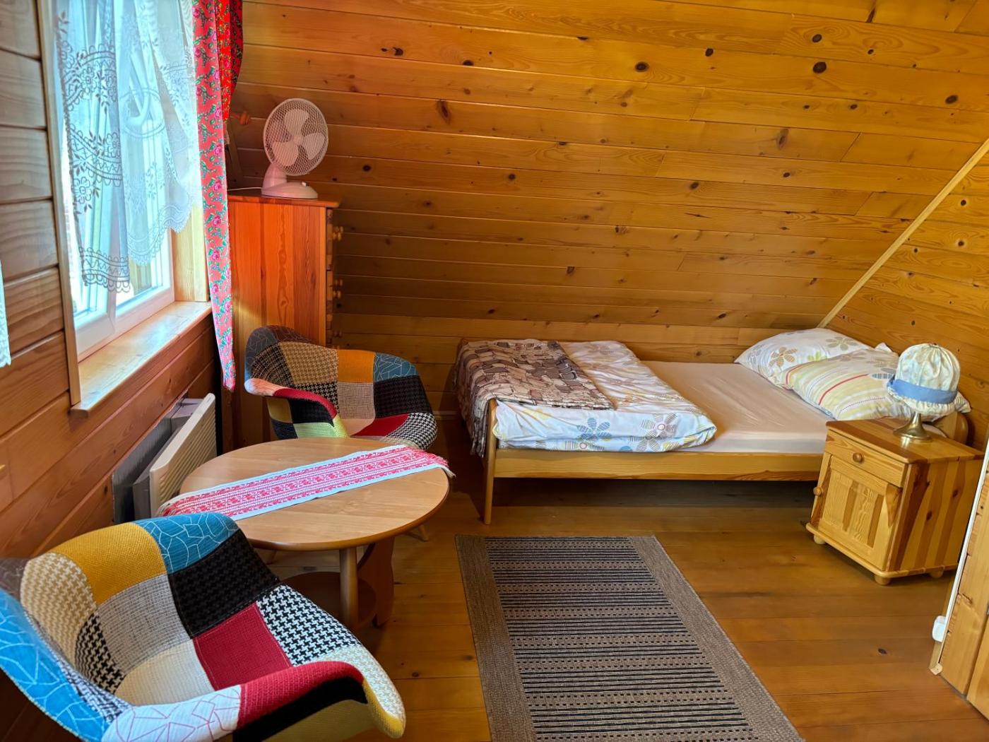 Domek. This chalet offers a fireplace. Guests will find a stovetop, a refrigerator, kitchenware and a microwave in the fully equipped kitchenette. The chalet also provides guests with a barbecue. The spacious chalet provides a private entrance, an electric kettle, a terrace with lake views as well as a shared bathroom featuring a shower. The unit offers 7 beds. Domek - 11 osobowy. Powierzchnia pokoju ok.: 80 mkw.
