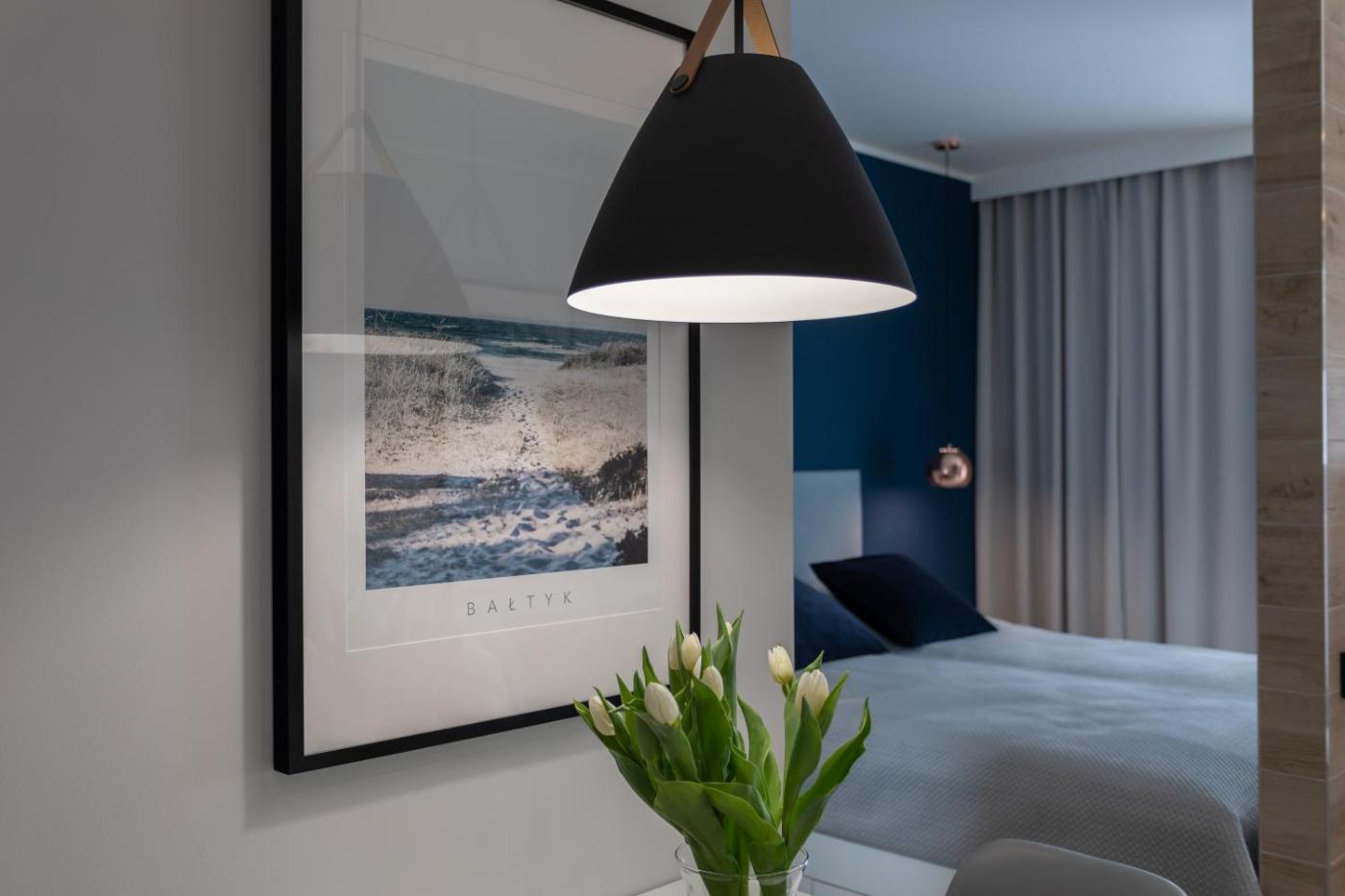 Apartament. This apartment includes 1 living room, 1 separate bedroom and 1 bathroom with a walk-in shower and a hairdryer. In the well-fitted kitchenette, guests will find a stovetop, a refrigerator, a dishwasher and kitchenware. Boasting a balcony, this apartment also offers a washing machine, soundproof walls and a flat-screen TV with cable channels. The unit has 2 beds. Apartament - 3 osobowy. Powierzchnia pokoju ok.: 31 mkw.